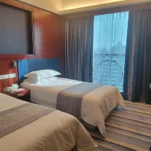 L'hôtel est situé à mi-chemin entre deux stations de métro, à cinq ou six minutes à pied. La chambre twin standard est un peu petite. Si vous avez un étage élevé, vous pouvez voir la vue sur la ville, et la Tour de Canton est également vaguement visible au loin. La douche et la baignoire de la salle de bain sont réunies et l'aménagement est relativement simple.