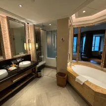 1. La chambre est grande et élégamment décorée, équipée d'une baignoire et d'une salle de bain privative. Le plus important est que la literie soit très propre et confortable.