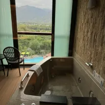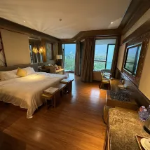 Parlons d'abord des avantages : la pièce est assez grande, l'hygiène est bonne et la vue sur la montagne est superbe. La zone des sources chaudes est assez grande, en particulier la zone des grottes, il y a de nombreuses piscines où vous pouvez vous baigner les jours de pluie, ce qui est un plus. Les plats chinois et occidentaux à la carte du restaurant chinois et du bar du hall sont tous deux bons. Bien que le prix soit élevé, dans un hôtel de villégiature, le prix et la nourriture sont toujours acceptables.