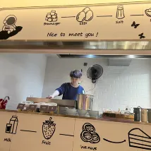 L'hôtel a trouvé cela intéressant, il nous a surclassé dans une chambre avec des fenêtres qui s'ouvrent sur l'extérieur pour aérer. Il y a un sèche-linge, ce qui est très pratique. Même si le petit déjeuner est dans le hall et est relativement petit, il est déjà très copieux. quelques bouchées ! Café Starbucks gratuit !