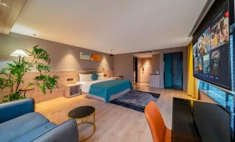 第一次入住,房間一進去就感覺很温馨,酒店的小姐姐們熱情,連保潔阿姨都態度很好,每次入住都體驗不錯,就衝著周邊吃得多,出門方便。一直想吃羅鍋,剛好樓下羅鍋一條街,晚上一堆燒烤小吃,這個房間和網上圖片沒差別,橘色調的剛好和秋天應景了。顏色我自己比較喜歡。
