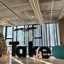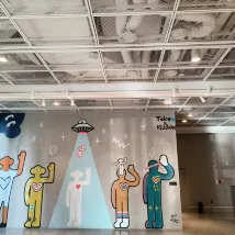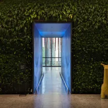 La réception est au 5ème étage et il faut passer par la grotte des médias (voir photo).