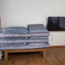 La chambre est plus spacieuse, propre et confortable que prévu. Elle convient très bien à une grande famille pour jouer ensemble. Il y a de nombreuses couettes dans le placard, qui peuvent être étalées dans le salon pour accueillir quelques personnes supplémentaires. pratique