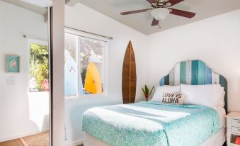 SUMMARY: Walk out the back gate to the coffee cafe or small local grocery store. Enjoy the outdoor shower, semi-private yard with a surfboard fence and murals and outdoor covered area for relaxing. Private and quiet cottage in a wonderful location for exploring the North Shore, Road to Hana and Haleakala. Perfect for couples celebrating their honeymoon or anniversary!