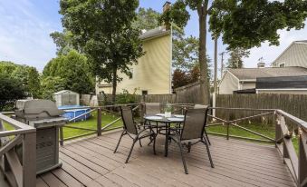 Enjoy our grassy fenced-in backyard with large deck, fire pit, the hot tub and pool - (seasonal ONLY)! Includes towels. Private parking for 2+ cars. Quick walk or bike to the beach!