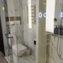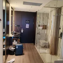 Nice tidy room. Clean bathroom. Room is of good size but not big. Good cosy and clean lobby. Nice area near to canals and parks there is a Luckin coffee shop at the building front. . 5 to 10 mins walk to restaurants and shops areas. 15 mins walk to metro station and very big shop malls and financial office areas. The new financial areas above the subway station are very modern and beautiful with many nice and reasonably priced restaurants in the malls. Front desk staffs are friendly, cheerful, polite and helpful. The cleaning ladies and mechanics (helped to set my TV) are polite and helpful.
