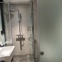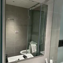 L'emplacement est bon. L'espace sur le comptoir de la salle de bain est petit, mais c'est bien d'avoir des patères, ce qui est rare dans les hôtels de même catégorie. Les serviettes sont fines et semblent sales ; elles sont peut-être un peu vieilles, car j'ai trouvé un petit accroc sur l'une d'elles. La taille de la chambre est correcte.