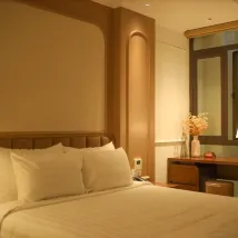 soyez conscient qu'ils verrouillent les portes la nuit mais il y a généralement quelqu'un dans le hall pour les déverrouiller, ne soyez pas comme moi et paniquez et préparez-vous car l'ascenseur s'éteint la nuit alors ne revenez pas ivre car les escaliers seront votre seule option mdr ! hehe cet endroit est un petit bijou caché j'ai adoré notre chambre, elle était petite mais elle avait tout ce dont nous avions besoin et on avait l'impression d'être dans un joli coin/studio confortable. le lit est confortable et tout le personnel est très sympathique. C'était un peu difficile d'y accéder par Grab, mais facile quand on se promène seul dans le vieux quartier. très abordable et vaut le prix ! je reviendrais ici car c'est assez proche de toutes les activités et un séjour propre et confortable !