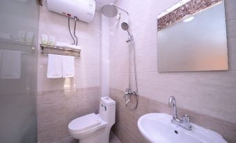 這個酒店在農村裡麪,用品極其簡單,很嘍。沒熱水,不能洗澡,沒牙刷。服務還可以,接送站挺速度。我住的是單間125元,不值。衞生還可以。