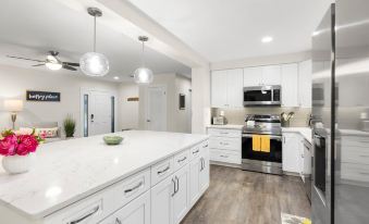 The kitchen is fully stocked with all the essentials so you can cook up a delicious meal or whip up a quick snack. We also provide a drip coffee pot and Keurig to get your day started.