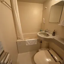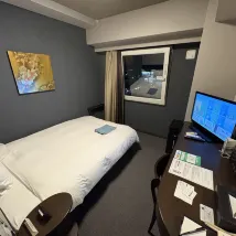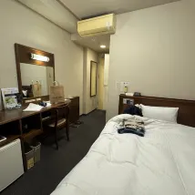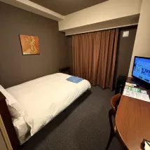 отель расположен очень далеко от жд вокзала. номера чистые, есть все необходимое. доброжелательные работники отеля. на первом этаже находится небольшой онсен, венлинговые автоматы, машина для льда, стиральные и сушильные машины. завтраки вкусные.