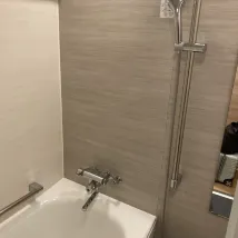 Les toilettes et la salle de bain étaient propres et donnaient une bonne impression. Malheureusement, je n'ai pas pu entendre la réceptionniste parce qu'elle parlait très vite, mais j'étais généralement satisfait des autres installations et de l'emplacement.