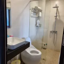 Les chambres sont grandes, les lits sont très propres et les toilettes et la douche sont bien séparées donc il n'y a aucun risque d'inondation. On nous a également offert deux bouteilles d'eau minérale gratuites, que nous avons bues en nous promenant en ville et en mangeant du banh mi et d'autres aliments.
