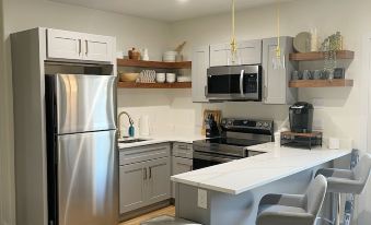 Enjoy your FL stay in a stylish, newly renovated and centrally located, Guesthouse Villa! Quartz countertops, washer/dryer, pull out couch with all bedding included. Sleeps 4 comfortably! Outside you’ll enjoy soft turf, outdoor furniture with market lights overhead and a fire table, as well as, a grill for those wonderful FL evenings! Kitchen is equipped with cooking essentials.