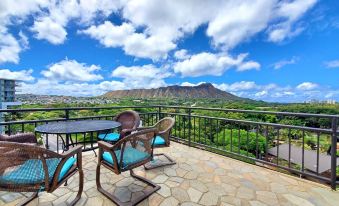 Though our suite does not have a private balcony, You have full access to the 10th floor sundeck (pictured) this is a wonderful place to relax with your iPad or book and enjoy stunning Diamond Head, park and Ocean views!!