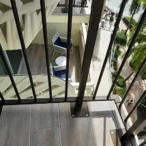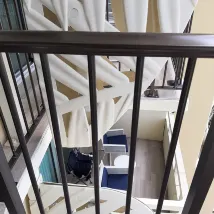 En particulier, depuis le balcon, vous pouvez voir le balcon à côté de l'étage inférieur et de l'étage supérieur directement ouvert, vous pouvez donc entendre toutes les conversations et voir les gens, vous devez donc être prudent.