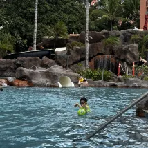 Se déplacer à Oahu est très pratique. Lawson est en bas et ABCstore est en face. L'hôtel possède sa propre plage et sa piscine. Les enfants se sont beaucoup amusés.