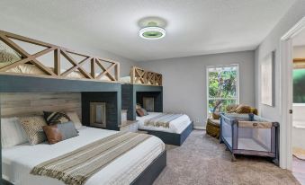 The backyard also features a covered patio with several grills, seating, and pool toys, as well as ample space for soccer or unwinding. And when the day comes to a close, retire to one of our beautifully appointed bedrooms - each with plenty of closet space and comfortable bedding.