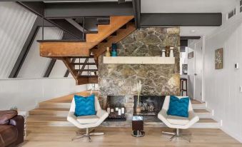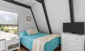 Our spacious lakefront A-frame features 5 bedrooms, 4 baths, and sleeps up to 12 comfortably. Enjoy lake views from 3 private balconies or the back patio, relax or exercise in the large game room, or explore the water with 2 included kayaks. Inside, you'll find a fully stocked kitchen, smart TVs, and fun for all ages—12-ft shuffleboard, darts, games, and more. A beautiful open floating staircase connects the three upper floors. The home is dog-friendly and offers ample parking.