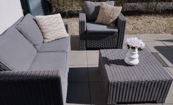 L’aéroport le plus proche est Colmar - Houssen Airport, situé à environ 6,7km de l'hôtel soit à peu près 13 min en voiture..Quel est l'aéroport le plus proche de Colmar garden level with closed garage. ?