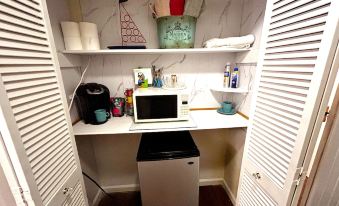 Enjoyed the coffee bar in home each morning. Neighborhood decorated during July 4th, too.