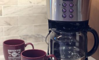 Sitting on the property of Northwinds Adventures, a year round camp, the “Perch" cabin features 3 bedrooms; one with a King bed (linens provided), one with a Queen bed (linens provided) and another with 2 twin bunks (linens provided). For additional sleeping space, there is a full futon and leather couch in the living room. White Oak hardwood floors throughout cabin and gorgeous maple walls and ceilings, both bathrooms have beautiful tiled walk in showers. A wood burning stove is available to take the chill off in the cooler seasons, firewood provided for $8/bundle. In the hot summer months enjoy the A/C. The kitchen is full with a large island, everything you need to prepare a great meal after a day outdoors. Washer/Dryer for use as well!