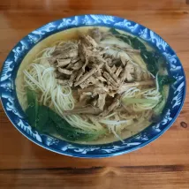 Nous avons dégusté une délicieuse soupe de nouilles au petit-déjeuner. Le propriétaire était très hospitalier. le geste de son mari en partageant le thé a été un moment fort. La chambre avait tout le nécessaire pour une nuit, parfaitement positionnée pour voyager en train. Le trajet prévu jusqu'à la gare était très utile, nous n'avons donc pas eu à y porter nos bagages.