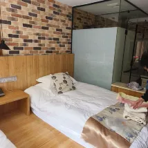 La chambre est soignée et propre. Elle se trouve à moins de 300 mètres de la gare de Huangshan Nord. Le patron aide à faire du covoiturage jusqu'à Huangshan le matin. Vous pouvez également prendre le bus touristique vers divers sites pittoresques. .