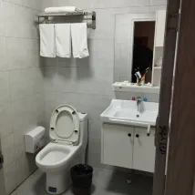 Cet hôtel est en diagonale en face du train à grande vitesse. Il y a de nombreux hôtels comme celui-ci dans tout le quartier. Je me sens relativement en sécurité la nuit. Le patron est très gentil. Si vous en avez besoin, pensez à l'apporter vous-même ou à l'acheter en magasin.