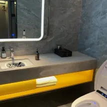 Difficile d'imaginer qu'il s'agit d'une sous-marque de Wyndham. Tous les équipements annexes sont de marques inconnues, notamment les robinets, les toilettes connectées, les ascenseurs, etc. La chambre fait nominalement 40 mètres carrés, mais en réalité, elle en fait moins de 30. L'insonorisation est également très mauvaise. Lorsqu'on parle dehors, on a l'impression que la porte est ouverte, et elle est difficile à fermer.