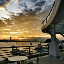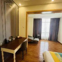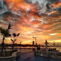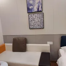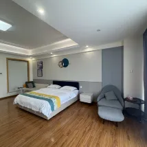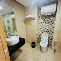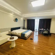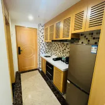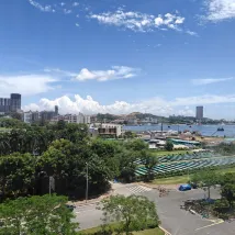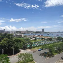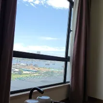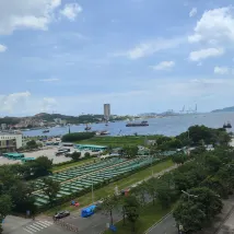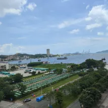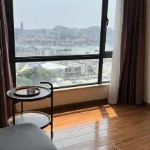 The receptionist speaks English (one of major thing for foreigners). Overall it’s located close to promenade. In the evening there is small night market with loads of Chinese karaoke. And the time I arrived it was construction nearby. There are several cafe nearby. It’s in tall building (30 floors) and take part of it. Reception is on 3A floor. It took me time to understand. The room is huge. The sea view is side and okay (there is port). The room is new and super clean. All amenities for travelers are there (personally I like shampoo).