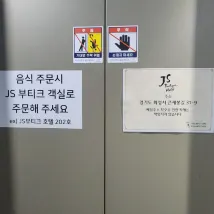 카드키받고 입실. 엘베에 붙은 배달음식 주소. 건물이 두개라서 실수할수 있는 사항을 꼼꼼히 챙겨주는 스윗함.