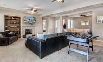 Un séjour 100 % confort vous attend dans cette maison de vacances à la déco personnalisée qui offre une cheminée et une piscine privée. Vous trouverez un patio aménagé privé.Vous profiterez d'une cuisine dotée d'un grand réfrigérateur/congélateur, un four et d'une plaque de cuisson. La télévision connectée de 65 pouces avec des chaînes par satellite est l'assurance de soirées divertissantes, tandis que pour surfer des heures sur les réseaux sociaux, vous profiterez de l'accès Wi-Fi à Internet gratuit.