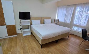 Удобное месторасположение. Невысокая цена. Отель достаточно новый. В целом - хорошо. Есть особенности заезда. Ресепшин в отеле, по крайней мере на август 2025, отсутствует. Только жилые комнаты по 5 на этаж, всего 4 этажа. Чтобы заселиться, по приезду нужно написать на номер отеля по WhatsApp и ждать, когда подойдут. 4 этаж самый прокуренный. На крыше хорошая панорама. В отеле есть несколько стиральных машинок. В комнатах есть мини кухня: мойка для посуды, холодильник, электро плита с двумя конфорками, электрочайник. Вся техника очень старая. Пультов от телевизора и кондиционера нет. Посуды очень мало. Кондиционер не во всех комнатах, так где его нет - напольный вентилятор. Нет утюга, фена. WiFi 5G - работает отлично. Матрас на кровате удобный, подушки хорошие. Душевая на средничек. Нет рещиновых ковриков и вешелок для полотенец. Из моющих средств: гель для душа, жидкость для мытья рук и посуды. Есть ароматизаторы. Хозяин отеля гостеприимный. На замечания по быту реагирует быстро. Например, при заезде в номере были проблемы: невозможно было включить холодильник, провод от холодильника, из-за столешницы, не дотягивался до розетки и шланг в душевой от лейки сильно протикал. Всё было исправлено в короткие сроки. В целом впечатление осталось положительное.