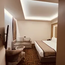 Mon ami et moi avons séjourné à l'hôtel pendant une semaine et avons été ravis de chaque instant, dès notre arrivée. C'est un hôtel très agréable, avec un personnel sympathique. Le service, la propreté et le calme étaient excellents. La chambre était nettoyée tous les jours, les serviettes changées et les draps changés tous les deux jours. De l'eau, du thé et du café étaient également offerts quotidiennement. La chambre était bien meublée, spacieuse, avec de nombreux placards et cintres. Il y avait des verres pour le thé et l'eau. Nos amis ont séjourné dans d'autres chambres de l'hôtel et tout le monde était ravi. Tout le monde a adoré le petit-déjeuner, même si nous ne l'avions pas inclus. Je recommande vivement cet hôtel. Bien qu'il ne soit pas situé en plein centre, il est facile et rapide d'accéder à divers quartiers et sites touristiques, et surtout à l'aéroport (à seulement une heure en métro et en bus). Merci infiniment pour votre hospitalité envers tous les Turcs. Nous avons reçu de l'aide à de nombreuses reprises. Quel pays merveilleux ! Paix, gentillesse et chaleur humaine à tous !