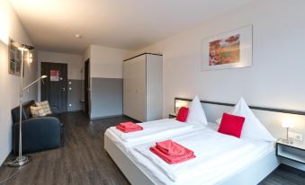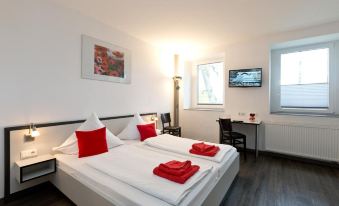 Das Positive vorweg, das Personal ist freundlich und das Hotel sauber. Das erwarte ich aber von jedem Hotel. Für über 100€ ein kleines, lieblos mit Sperrholzschrank eingerichtetes Zimmer vorzufinden, ist schon enttäuschend. Und das Schlimmste, wenn man es als Doppelzimmer nutzt: Das winzige Bad ist mit einer Milchglas- Schiebetür direkt neben dem Bett abgetrennt, die zwar optisch etwas abgrenzt, aber akkustisch und olfaktorisch kein bisschen, was das bedeutet, mag sich jeder selbst vorstellen. Das Frühstück besteht aus Aufbackbrötchen, die irgendwann alle sind, Rührei (kalt) gibt es nach Aussage nur sonntags und mittwochs und wenn man etwas anderes als Kaffee oder Tee möchte, muss man dass an der Rezeption bestellen. Für einen Preis, für den ich überall ein Zimmer in einem Mercure oder Dormero Hotel bekomme, ist das alles sehr unbefriedigend.