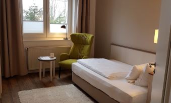 Gemütliche, moderne, Zimmer, modernes Bad. Zimmer mit Balkon zum kleinen Garten, Abendsonne. Gemütliches Restaurant mit Wahlmenue und kleiner Tageskarte. Eierspeisen zum Frühstück werden frisch auf Wunsch zubereitet. Gut sortierte Bar, allerdings nicht getrennt vom Restaurant. Kleiner Wellnessbereich. Freundlicher Empfang und Verabschiedung, freundliche Bedienung im Restaurant. Ruhige Lage, etwas weit ab vom Schuß (etwa 25 Minuten zu Fuß in die Altstadt). Einziges Fragezeichen: € 5/Tag Gebühr für den Parkplatz. Dafür hätte ich irgendetwas erwartet, z.B. Überdachung, Schranke. So nur "der Platz neben dem Hotel".