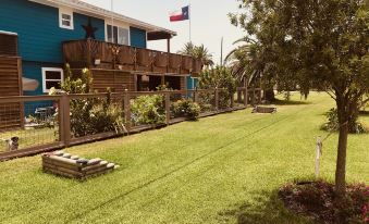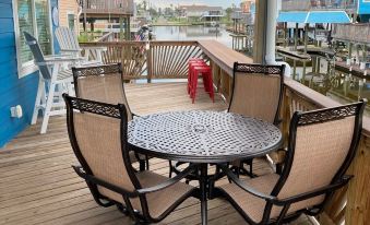 Had a wonderful time at this home. It was right on a canal, and had a couple of kayaks available to use. Beautifully decorated on the inside and very clean, and the house stayed cool during the hot summer Texas sun. It had plenty of beds for a family of five adults. We enjoyed spending the evening under neath listening to music.