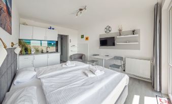 Vous vous sentirez comme chez vous dans cet appartement qui offre une kitchenette dotée d'un réfrigérateur et d'une plaque de cuisson. Pour rester connecté, vous pourrez compter sur l'accès Wi-Fi à Internet gratuit tandis que la télévision à écran plasma de 30 pouces vous promet des soirées divertissantes. Parmi les petits plus, vous trouverez sur place une bouilloire électrique et un fer / une planche à repasser.