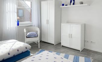 A beautiful DH half on 2 floors! With everything you could wish for, nothing was missing. Terrace with a beautiful view of the Ditzum mill, including the sunset. Two bedrooms upstairs and even a very cute children's room for 1 small child additionally fur