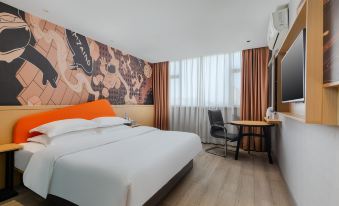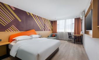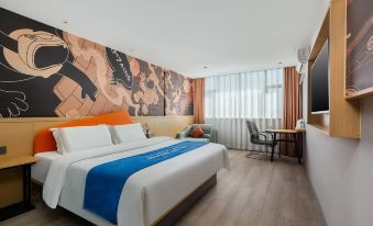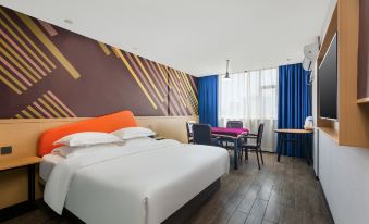 With its unique design style, considerate service and excellent location, iu Hotel (Ji'an Jinggangshan University Railway Station) has become an ideal place for travelers to stay in Ji'an. The hotel is located at No. 18 Xueyuan Road, Qingyuan District, Ji'an City, adjacent to Jinggangshan University, exuding a strong academic atmosphere. Just a few steps away from Ji'an Railway Station, passengers do not have to worry about the fatigue of the boat, and it is easy to achieve the convenient experience of getting off the hotel. All kinds of facilities in the room are complete, from brand toiletries and soft bath towels in the independent bathroom, to high-speed wireless network, convenient charging interface, to carefully prepared free bottled drinking water, every detail shows the hotel's care and dedication to guests. Some rooms also have viewing windows overlooking the city or quiet street views, adding a sense of accommodation. The surrounding transportation network is developed, and many bus routes pass through here. Whether you go to the bustling business district in the city or go to Jinggangshan Airport to start a longer journey, you can travel efficiently and save valuable time for the trip. Adhering to the brand concept of "young, energetic and fashionable", the exterior design of the hotel has a unique modern sense, with bright colors and smooth lines colliding, which stands out in the surrounding buildings and highlights its unique charm. Entering the lobby, the open space layout is eye-catching, and simple and creative decorative elements can be seen everywhere. Colorful geometric carpets, unique lamps and lanterns, and artistic murals jointly create a vibrant social atmosphere, so that guests can instantly forget the fatigue of the journey and immerse themselves in a relaxed and pleasant environment.