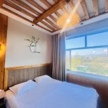 Heureusement, j'ai choisi cette famille d'accueil après l'avoir choisie. Pour les visites touristiques, l'emplacement est très pratique (mais le choix de restauration est relativement moins vaste qu'en ville). Le parc d'attractions de Guancheng est à quelques minutes à pied, et Fantawild se trouve en face. Juste en face se trouve le parc d'attractions Garden Expo. C'est un endroit très agréable pour se promener après le dîner. Parlons de notre séjour. Cette famille est très chaleureuse et décontractée. À notre arrivée ce jour-là, le grand-père de la famille d'accueil nous a vus descendre de la voiture à la porte et s'est immédiatement levé pour aider les enfants à porter les bagages et les faire monter à l'étage. Dès que je l'ai suivi et que j'ai franchi le seuil, je me suis immédiatement sentie chez moi, chaleureuse, avec la décoration littéraire et nostalgique du rez-de-chaussée à chaque recoin (atmosphère nostalgique des années 80 et 90). Nous habitions au deuxième étage. Bien qu'il soit en bord de route, il était très calme et confortable. Les grandes fenêtres nous permettaient d'apercevoir les montagnes enneigées au loin. La chambre était propre et bien rangée, avec tout le nécessaire. Le patron était très sympa. Il venait nous chercher à Guancheng, ou nous pouvions louer une voiture pour une excursion. Nous sommes restés trois jours consécutifs et nous nous sommes bien amusés. Nous devions aller en ville faire des courses le dernier soir, et nous avons pris une voiture pour Dunhuang le lendemain. Le patron nous y a conduits et nous a raconté l'histoire de Jiayuguan tout au long du trajet. Il y avait un itinéraire pour nous conduire jusqu'au cantilever, et nous avons aussi discuté des loisirs et des restaurants tout au long du trajet.