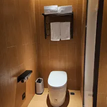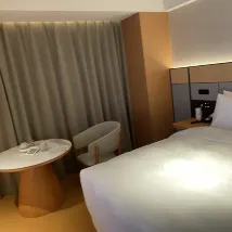 C'est plutôt bien. C'est très proche de l'aéroport. La navette est disponible 24h/24. Le bus est propre et frais. Le hall est très lumineux. La chambre est très confortable. Le thé servi en chambre est également bon. C'est idéal pour les vols de nuit. C'est un peu loin de la ville, à environ une heure de route. Le robot à emporter livre les plats directement à l'hôtel. Le petit-déjeuner est plutôt bon. Bien qu'il soit exclusivement chinois, il propose également des spécialités locales, comme des gâteaux froids, des nouilles et divers plats légers en apparence, mais délicieux. C'est un hôtel économique, et je recommande vivement cet hôtel.