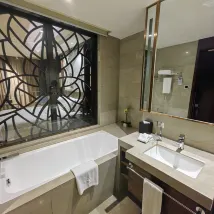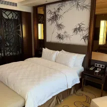 J'ai été absolument enchanté(e) par cet hôtel ! Que ce soit au niveau des infrastructures matérielles ou de la qualité du service, tout est de premier ordre. La chambre est décorée avec beaucoup de goût et tous les équipements fonctionnent parfaitement. Le personnel de l'hôtel est très professionnel et très aimable. Ils m'ont même accordé un départ tardif. Lors de l'enregistrement, j'ai mentionné à la charmante réceptionniste que je revenais de l'ascension du Mont Tai. Quelle ne fut pas ma surprise de trouver, de retour dans ma chambre, une bassine pour les pieds apportée par le personnel de service ! Ce geste m'a fait chaud au cœur et témoigne d'une attention exceptionnelle. C'est sans la moindre hésitation que j'attribue cinq étoiles à cet établissement !