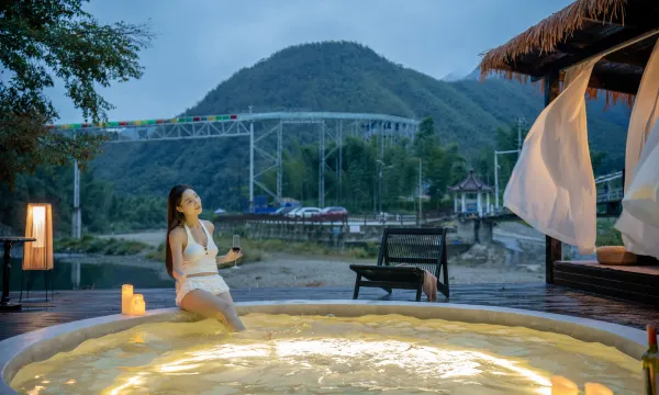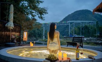 Qingquan · Stream View Private Hot Spring King Bed Room Mountain View + Canyoning + Projector + Private Hot Spring