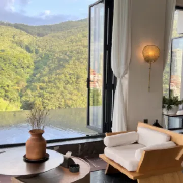 L'hôtel est absolument magnifique, à seulement 1,5 km de Gaozhuang. Le personnel était très serviable et a même porté nos bagages jusqu'à notre chambre. La piscine à débordement est splendide et les enfants se sont éclatés ! 🥳 On nous a même offert le thé de l'après-midi à notre arrivée ☕️. Notre chambre offrait une vue sur la montagne ⛰️ et la forêt primaire depuis le balcon. La literie était très confortable. Des serviettes jetables et de la lessive étaient également fournies. Le petit-déjeuner était excellent.