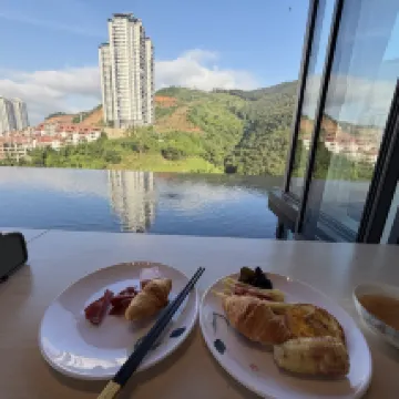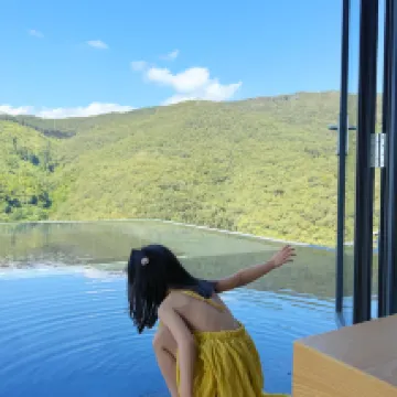 L'hôtel est au sommet de la montagne, l'air est excellent et le service est très attentif. Ils proposent de porter vos bagages jusqu'à votre chambre. La piscine à débordement du hall est magnifique et parfaite pour prendre des photos ! Il y a aussi un bar à livres et un espace "Sky Mirror" à l'étage, avec une vue imprenable sur les montagnes depuis la fenêtre. La chambre est assez grande, le lit est tellement doux que c'est super confortable pour dormir ! On pourrait facilement passer la journée entière ici sans sortir ! C'est vraiment agréable !