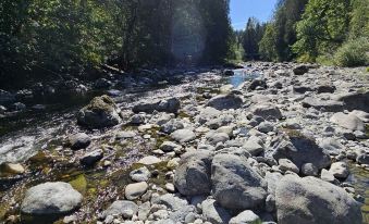 Owner is very responsive and helpful, place is well done; grounds well kept. Feels private. Grill, hot tub, very comfortable bed and pillows. Just everything you need to recover from a day of hiking. The sound of the river is so soothing.