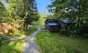 This cozy cabin is freshly renovated. The bedroom is outfitted with a queen bed, dresser, coffee station and a bar to hang a few clothes on. The ductless heating and AC will keep you comfortable no matter what season you are visiting. In the main room there is a tv, a few books & games, high speed fiber internet for video streaming or work.