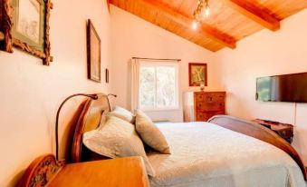 Cozy house with a/c and several decks with mountain view. Enjoyed the jacuzzi nightly. Good walks in the neighborhood. Very comfortable. The driveway took a little getting used to, but then it was fine.